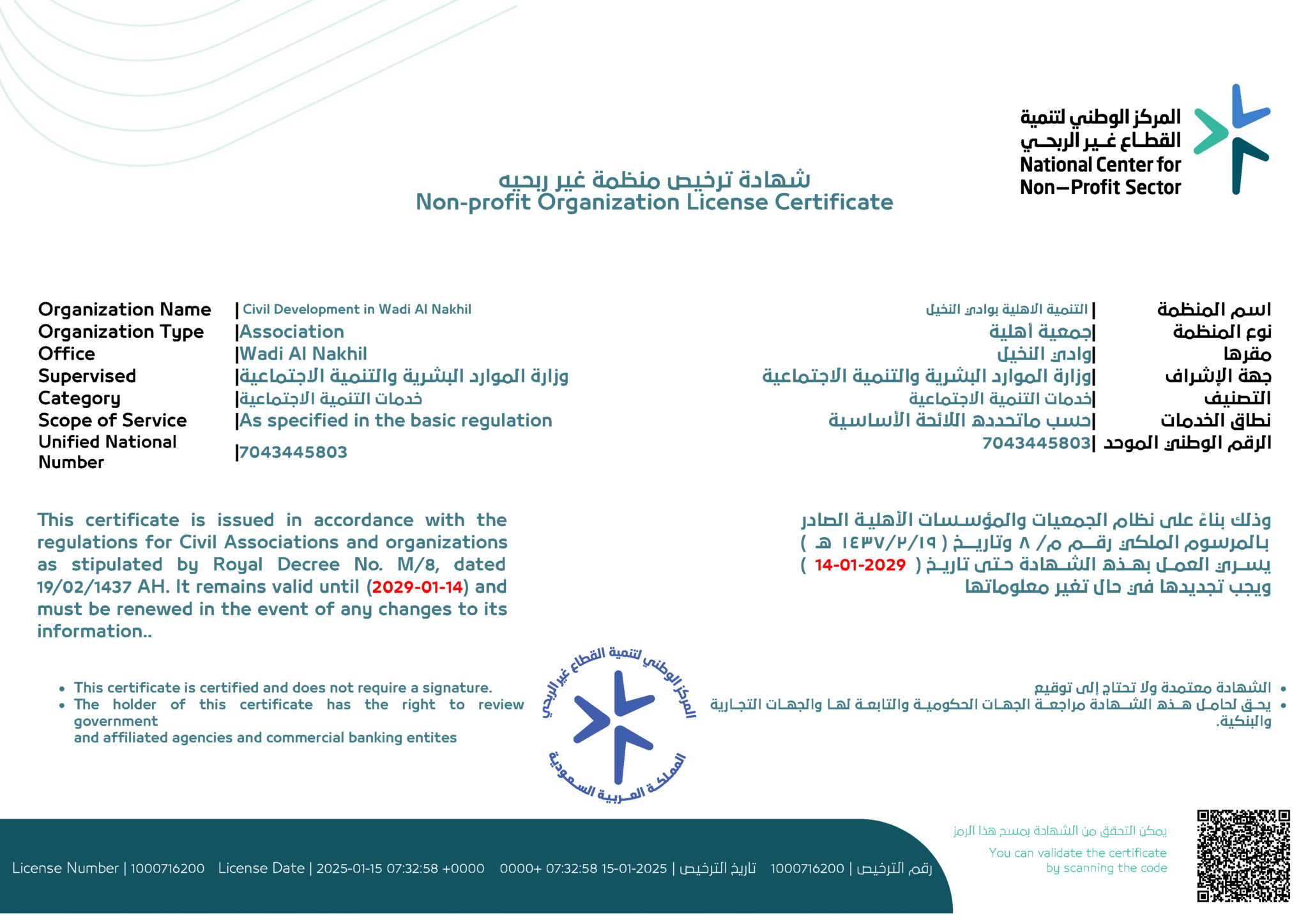 — جمعية التنمية الأهلية في وادي النخيل (@tnwadialnakhil) February 21, 2025